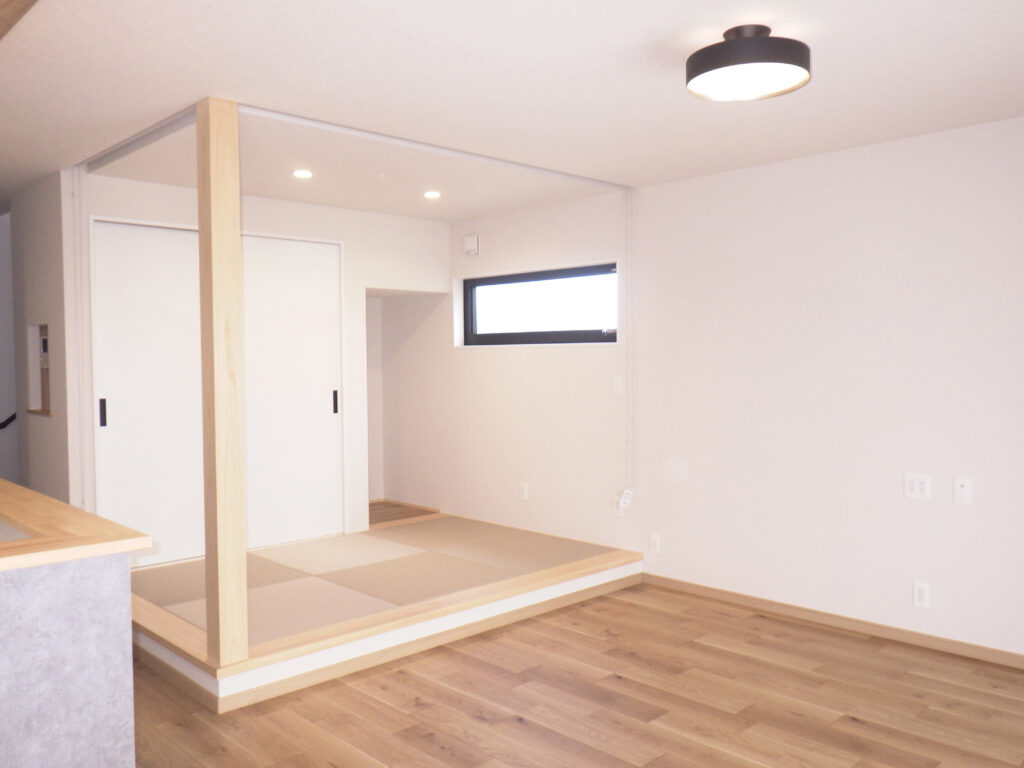 リビング横には小上がりのタタミを配置し家族のライフスタイルの変化に合わせて利用できるようにしています。