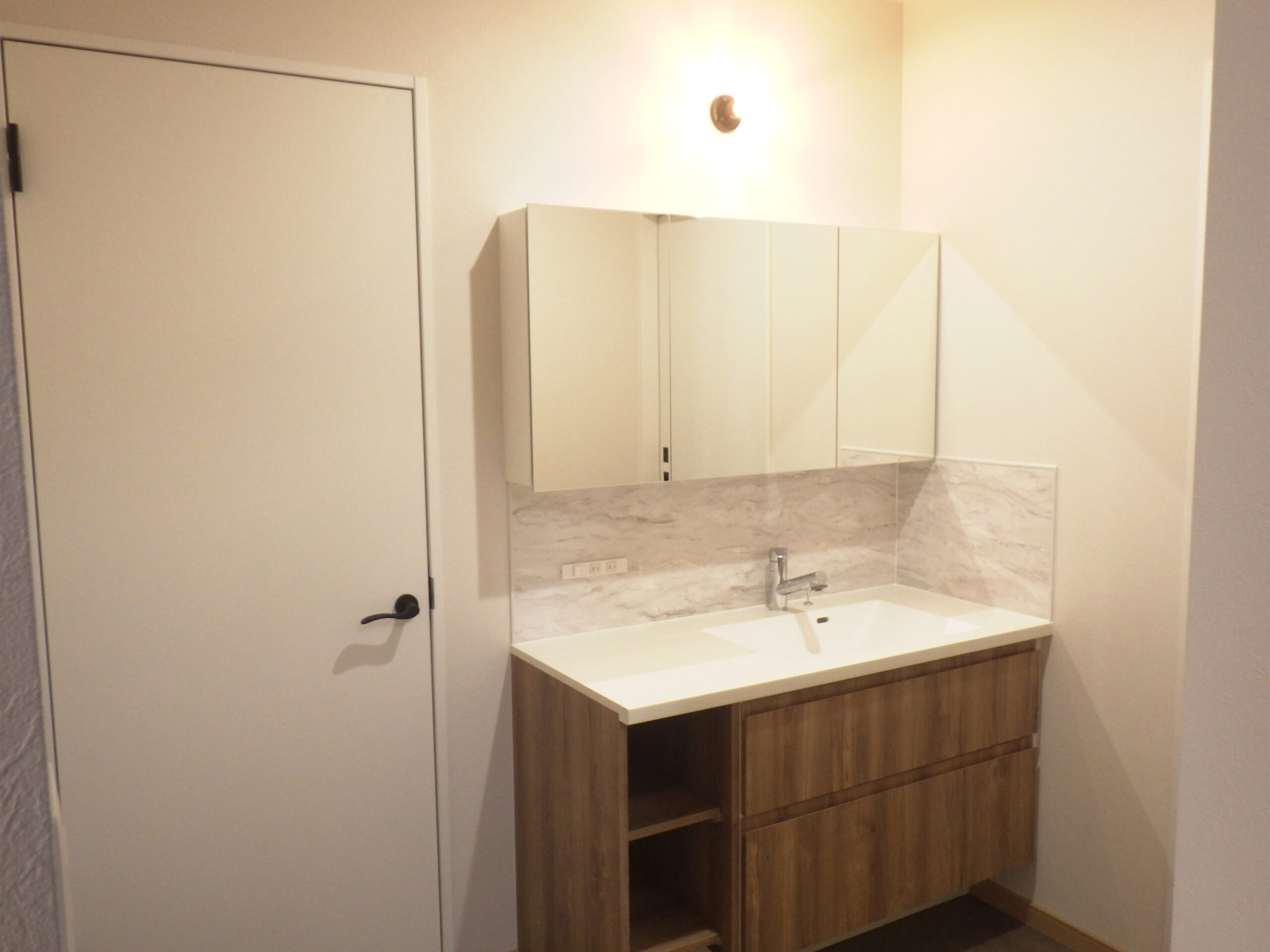 洗面台は脱衣室とは分離しているため、脱衣室を利用していてもストレスなく洗面台が使えます。